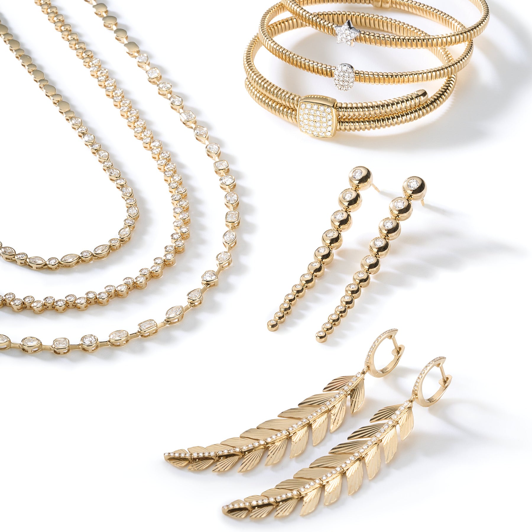 Most jewelry can be specially ordered in white, yellow, or rose gold. Estate jewelry & pre-owned timepieces are one-of-a-kind.