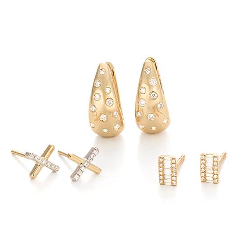 14KT yellow & white gold "X" diamond earrings with 0.04CTW 4-prong set round diamonds.