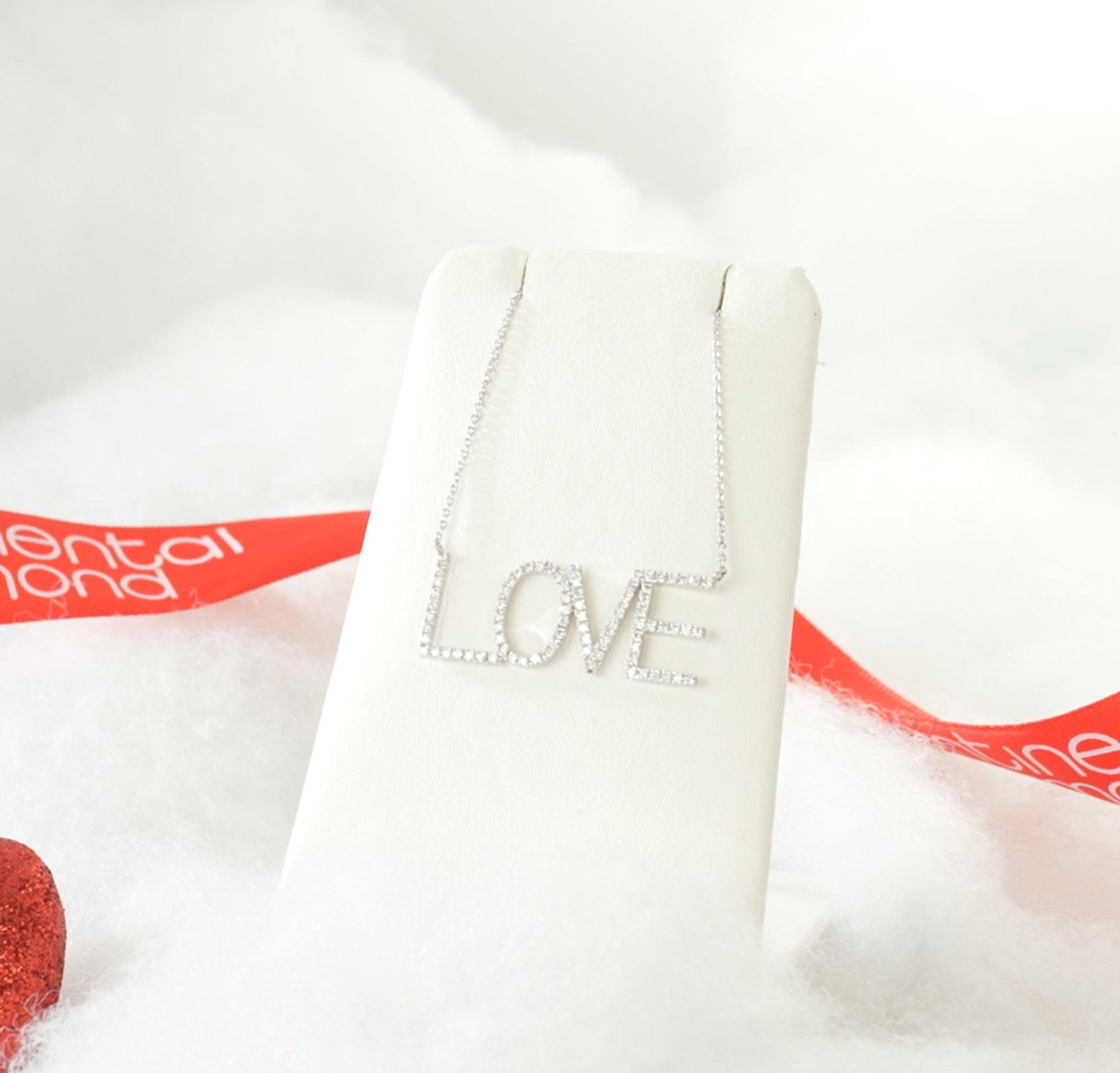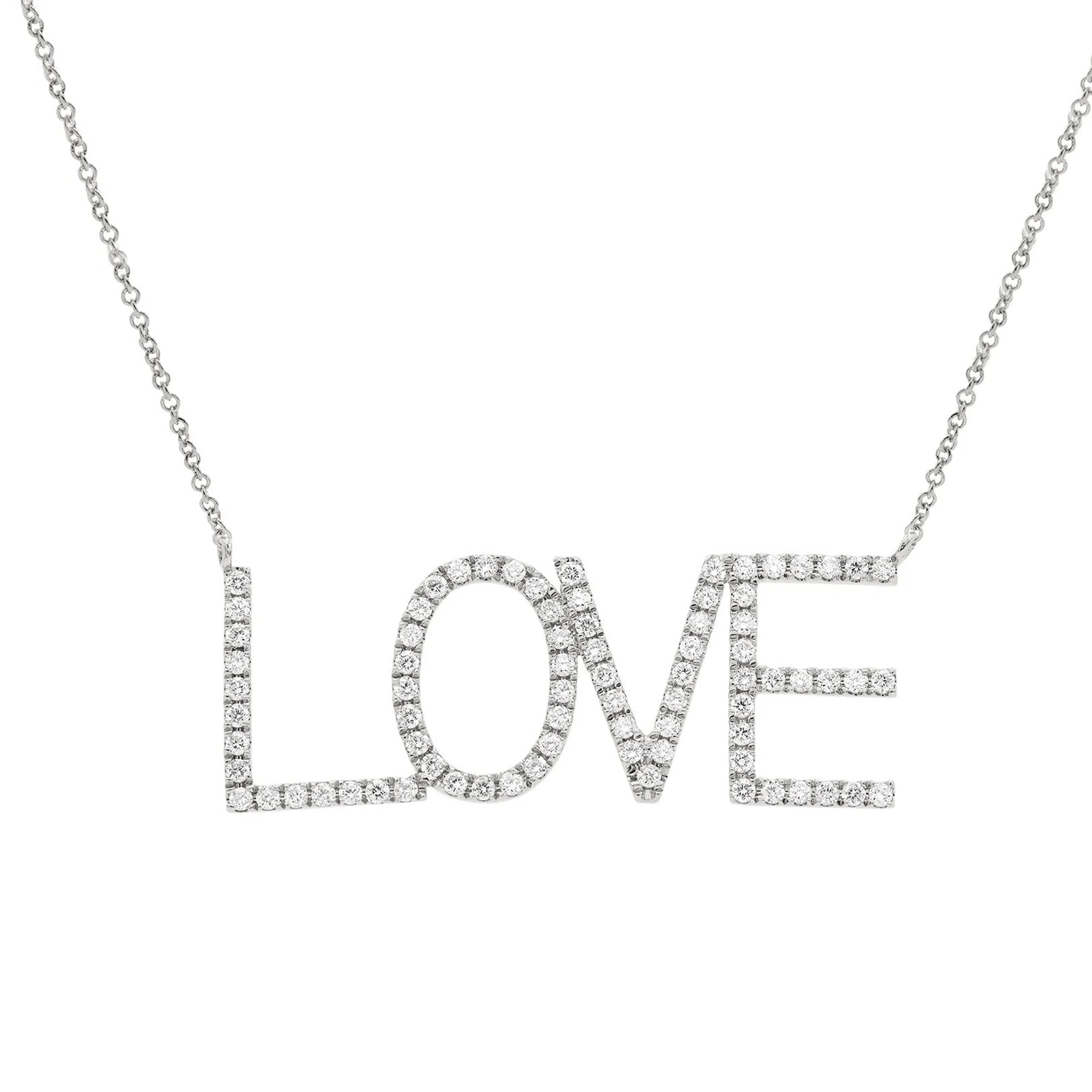 18K white gold 19" love necklace with 78 round diamonds totaling 0.58 carats (G/SI1, 4-prong set).