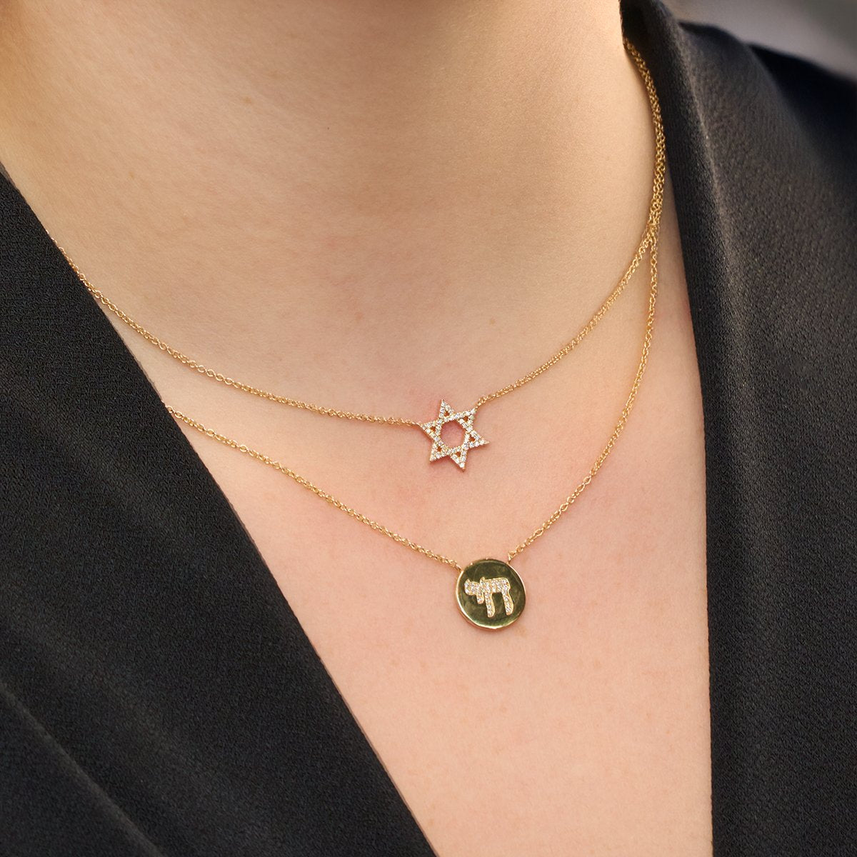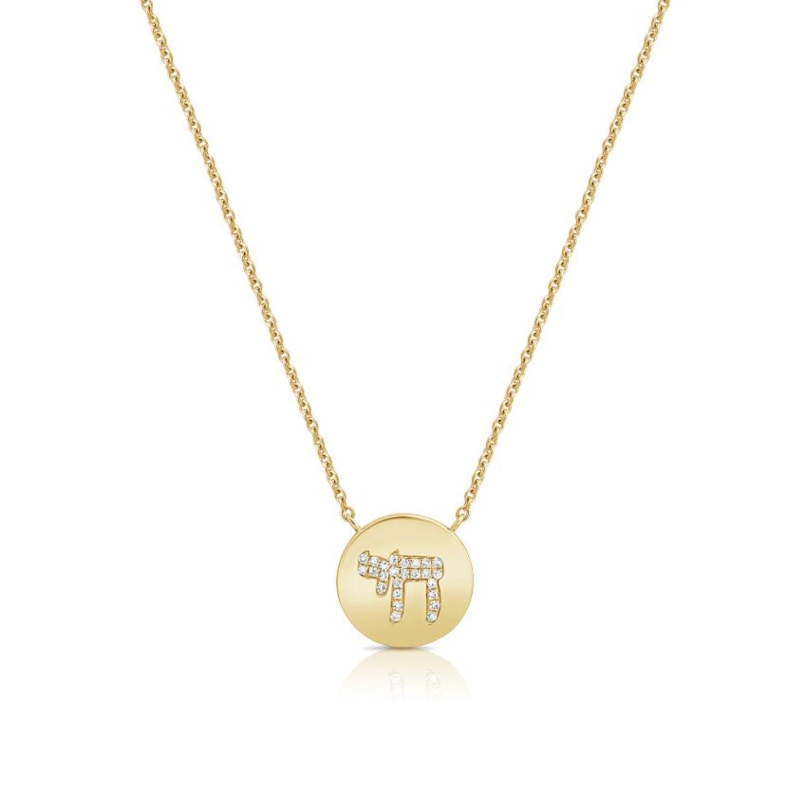 Crafted in 14KT yellow gold, this meaningful 16"+2" adjustable Chai necklace features 25 prong-set round diamonds totaling 0.10ctw (GH/SI2). A symbol of life and good fortune, this piece blends tradition with elegant sparkle.