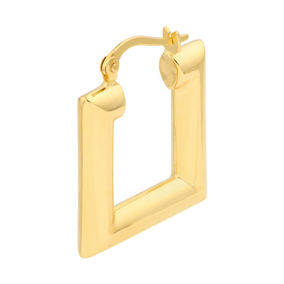 Crafted in 14KT yellow gold, these polished square hoop earrings offer a modern twist on a classic style. Their sleek, geometric shape and high-polish finish make them a versatile accessory.