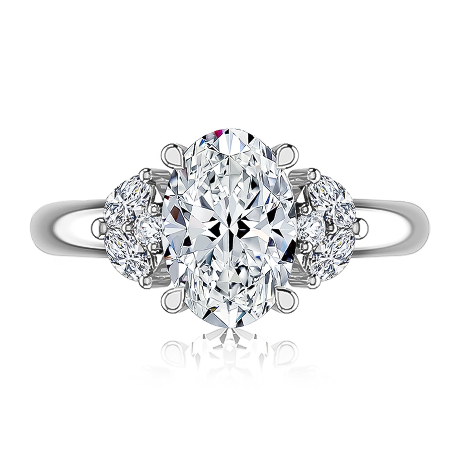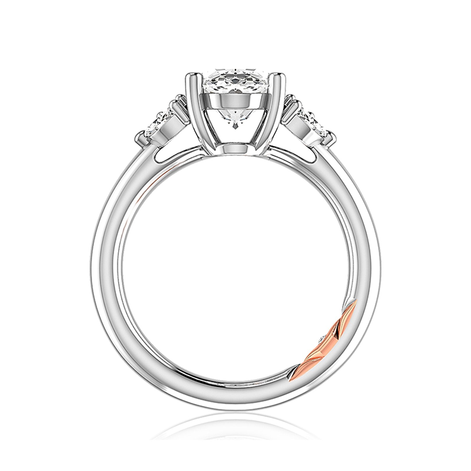 14K white gold semi-mount ring with a four-prong setting for a 2.00 carat oval center. Accented with 6 marquise and round diamonds totaling 0.34 carats, prong set, G color and SI clarity, plus one hidden diamond in the shank totaling 0.004 carats. Center sold separately. Available by special order in other metals, shapes, and sizes.