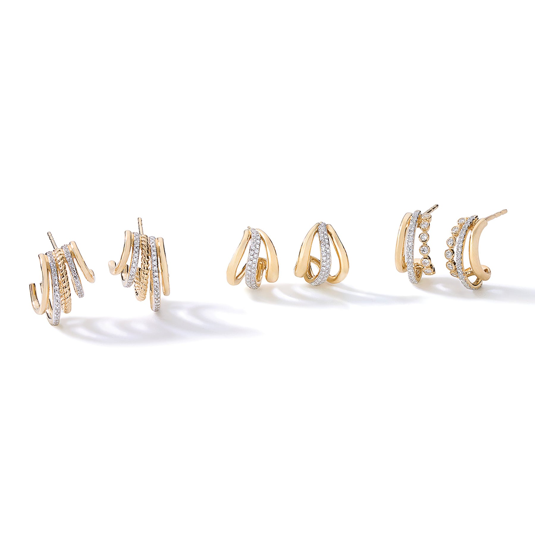 14kt yellow and white gold hoop earrings with 74 prong-set round diamonds totaling 0.18ctw.