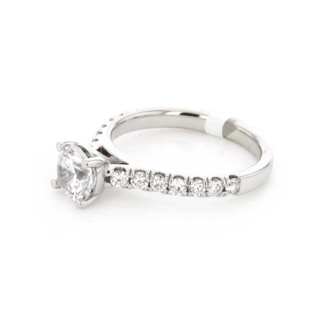 14K white gold semi-mount ring with a 4-prong head (fits approx. 6.5mm round center, sold separately) and 14 prong-set round diamonds totaling 0.47 carats (GH/VS). From the Signature Collection by Continental Diamond. Available by special order in other metals, diamond shapes, and sizes.