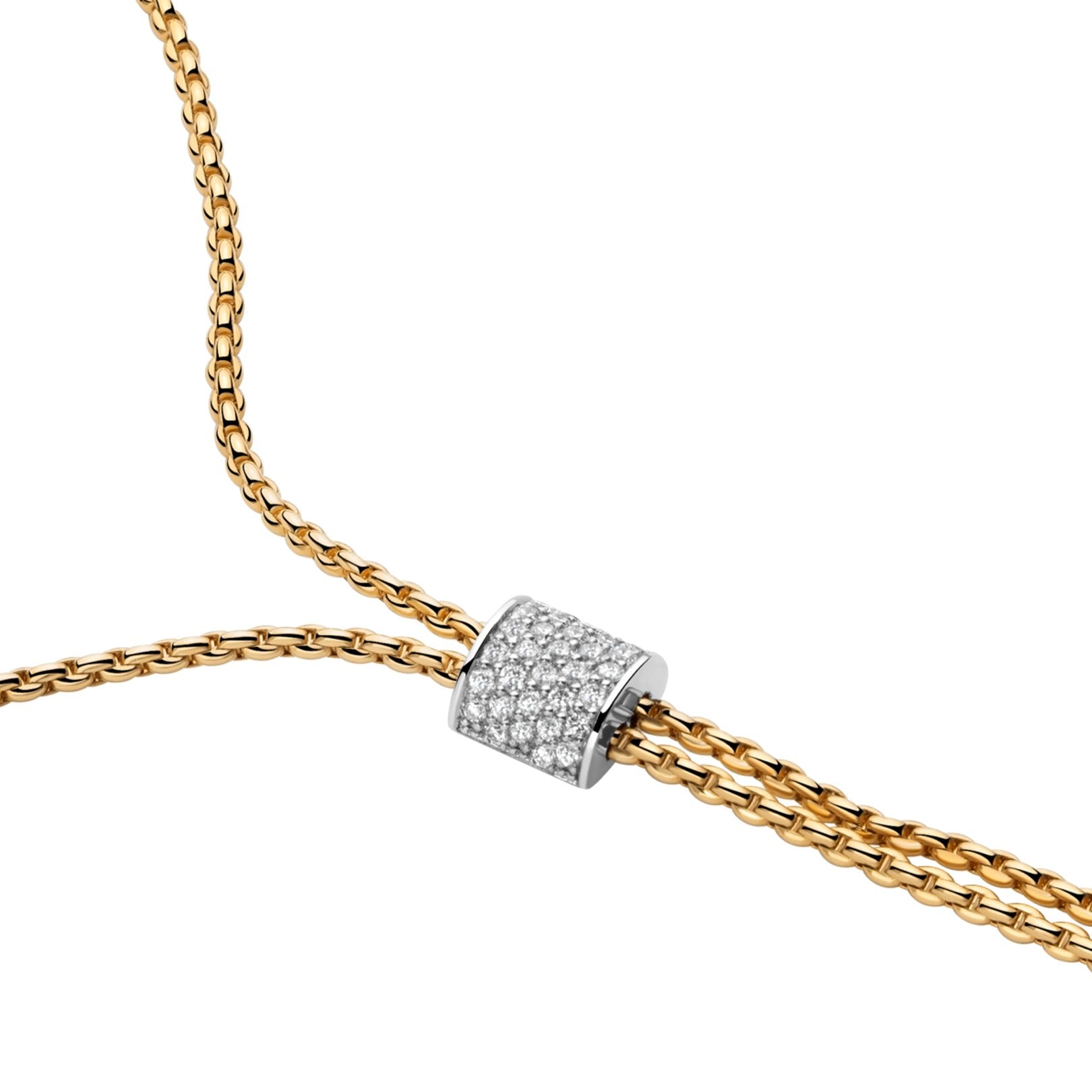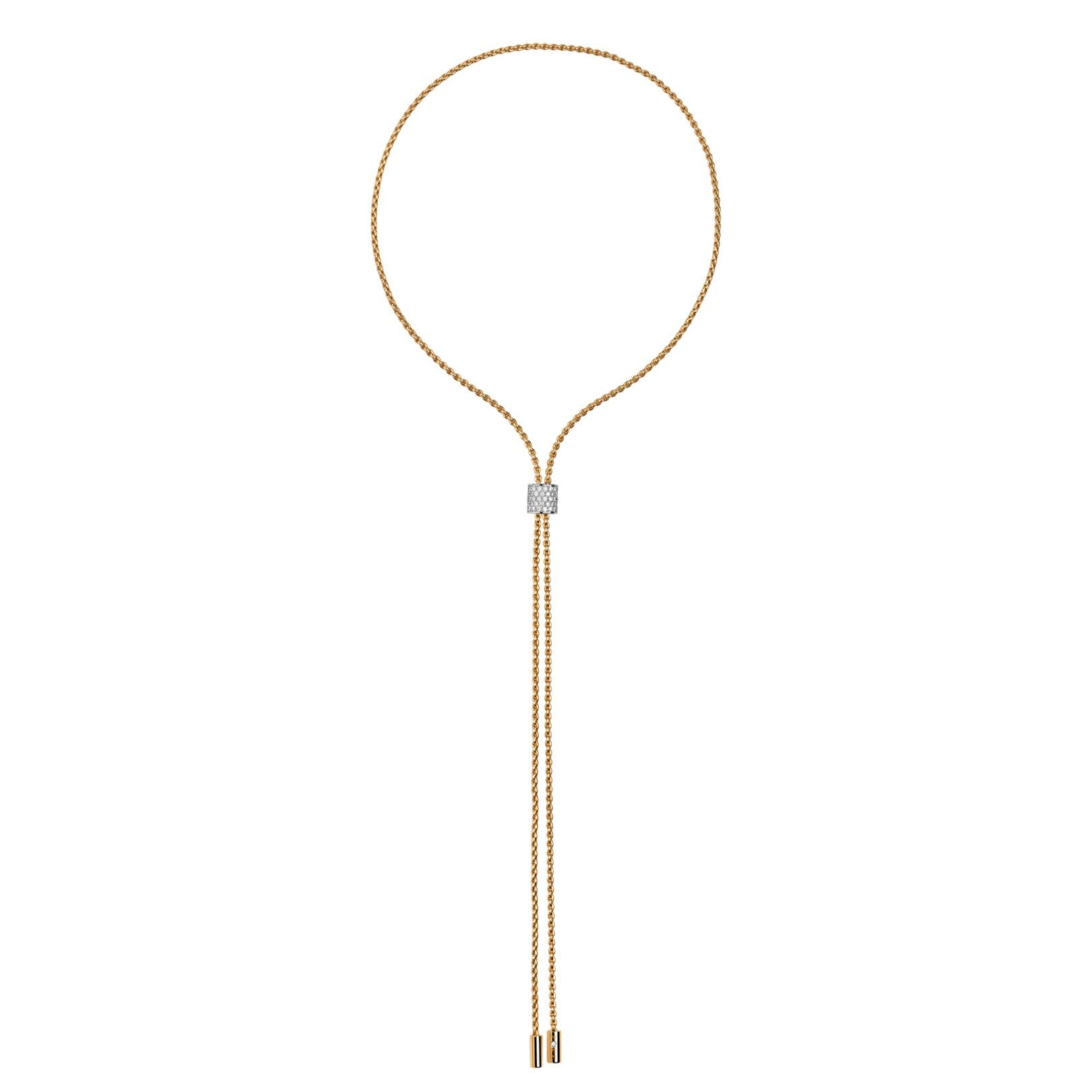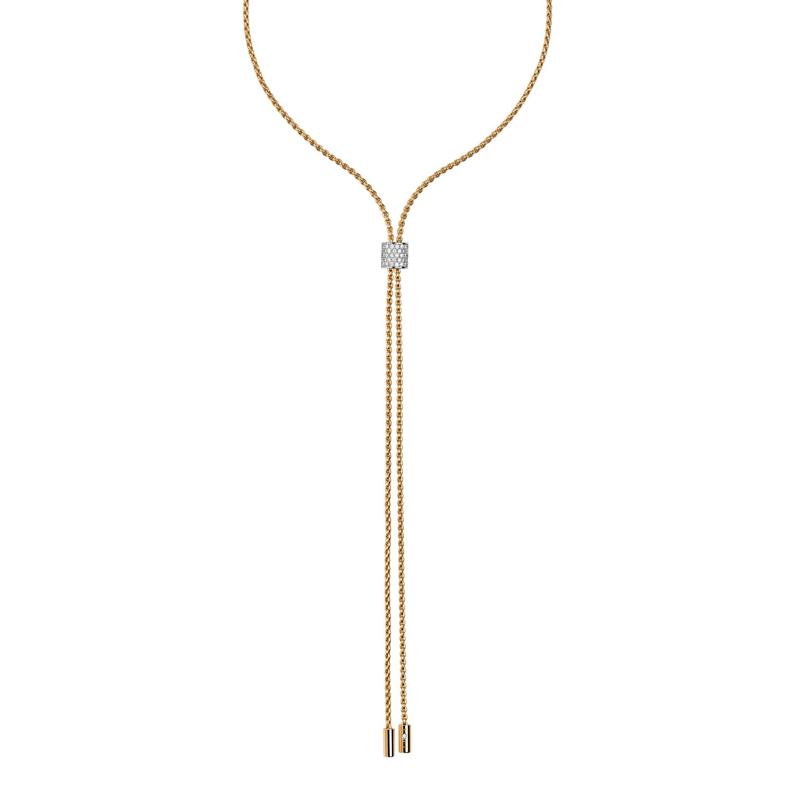Handmade in Italy, this 18k yellow gold lariat rope necklace from the Aria collection features 0.48 total carats of pavé-set round diamonds graded G color and VS clarity.