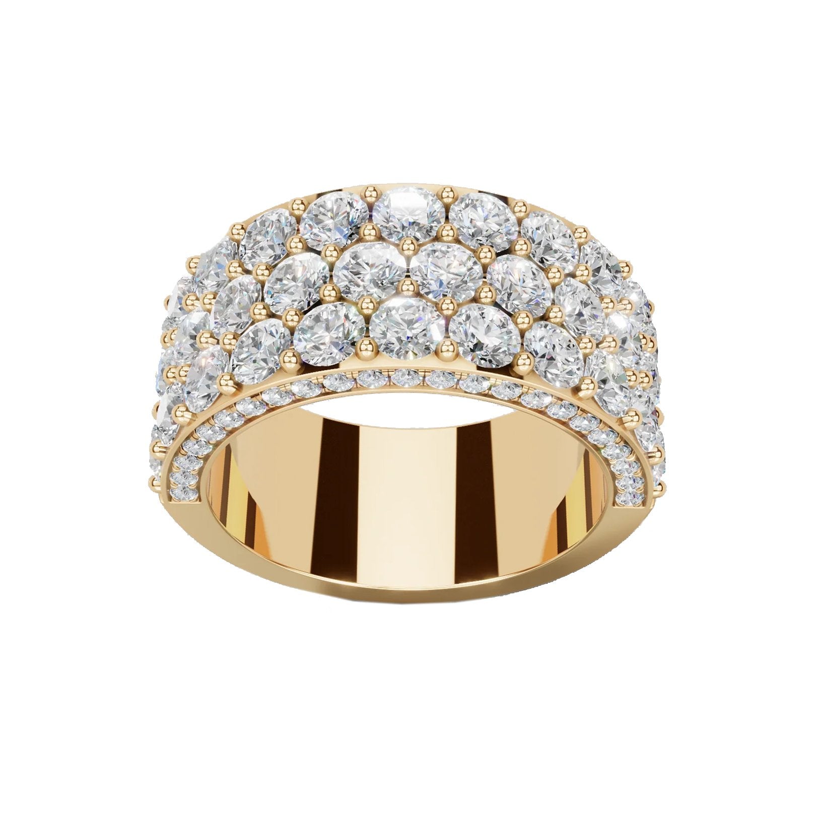 14KT yellow gold 5-row band (3-row center with 1-row on each side) featuring 80 pave-set round diamonds totaling 3.47 CTW, GH/VS quality; The Signature Collection by Continental Diamond.