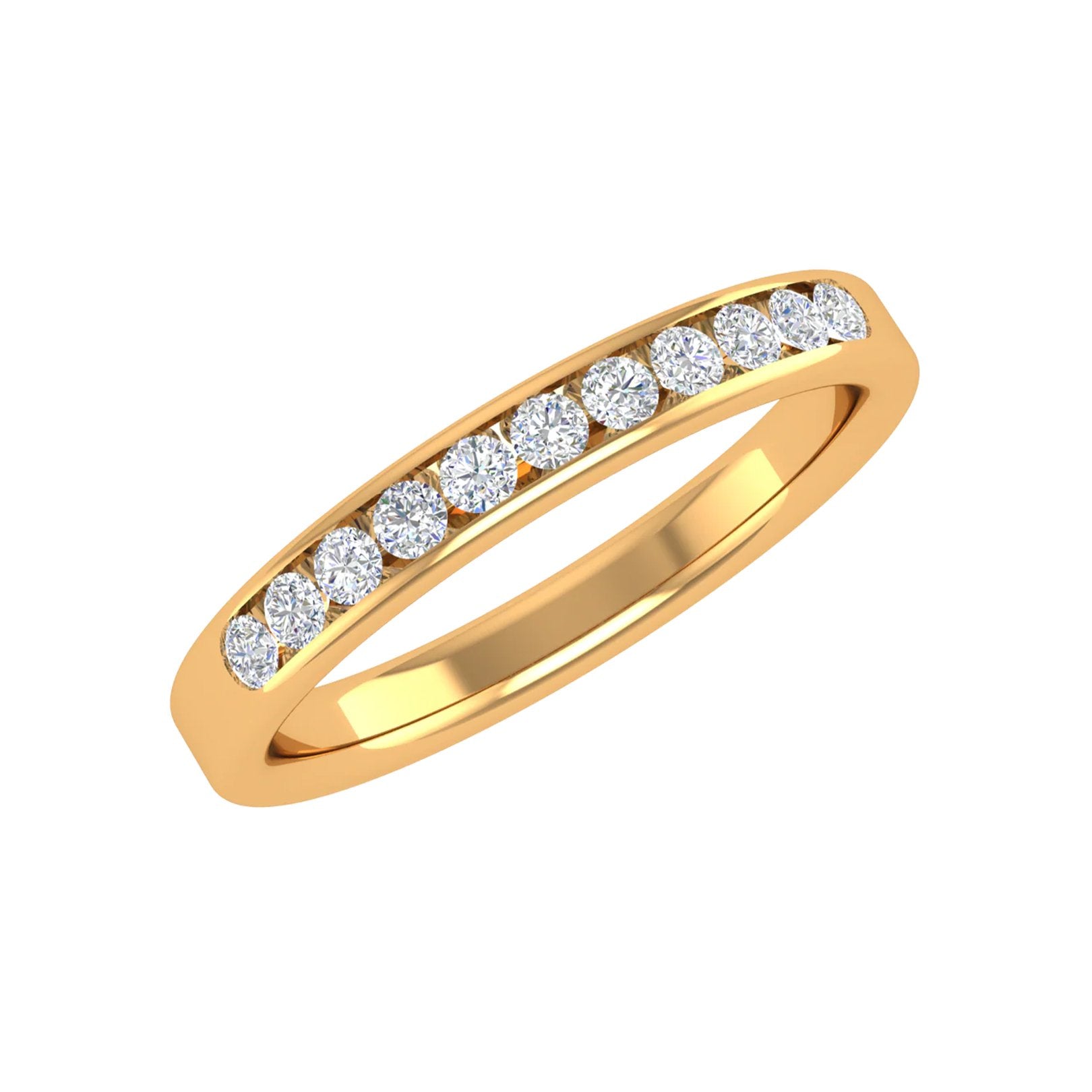 18K yellow gold anniversary band from The Signature Collection by Continental Diamond featuring 11 channel-set round diamonds totaling 0.24 ctw (FG/VS).