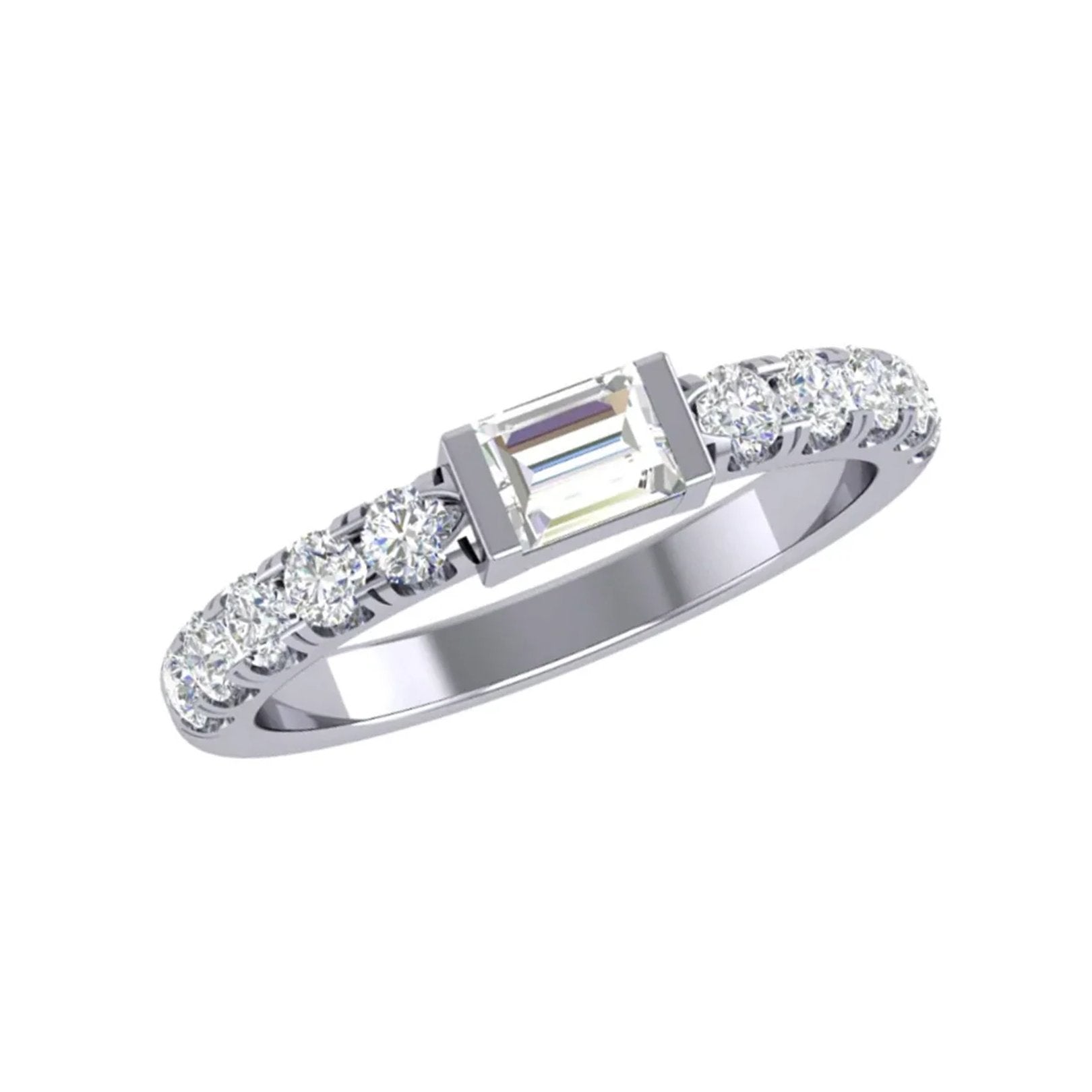 14K white gold band with 11 round diamonds totaling 0.70 carats (GH/VS, 4-prong set) and one bar-set straight baguette diamond. From the Signature Collection.
