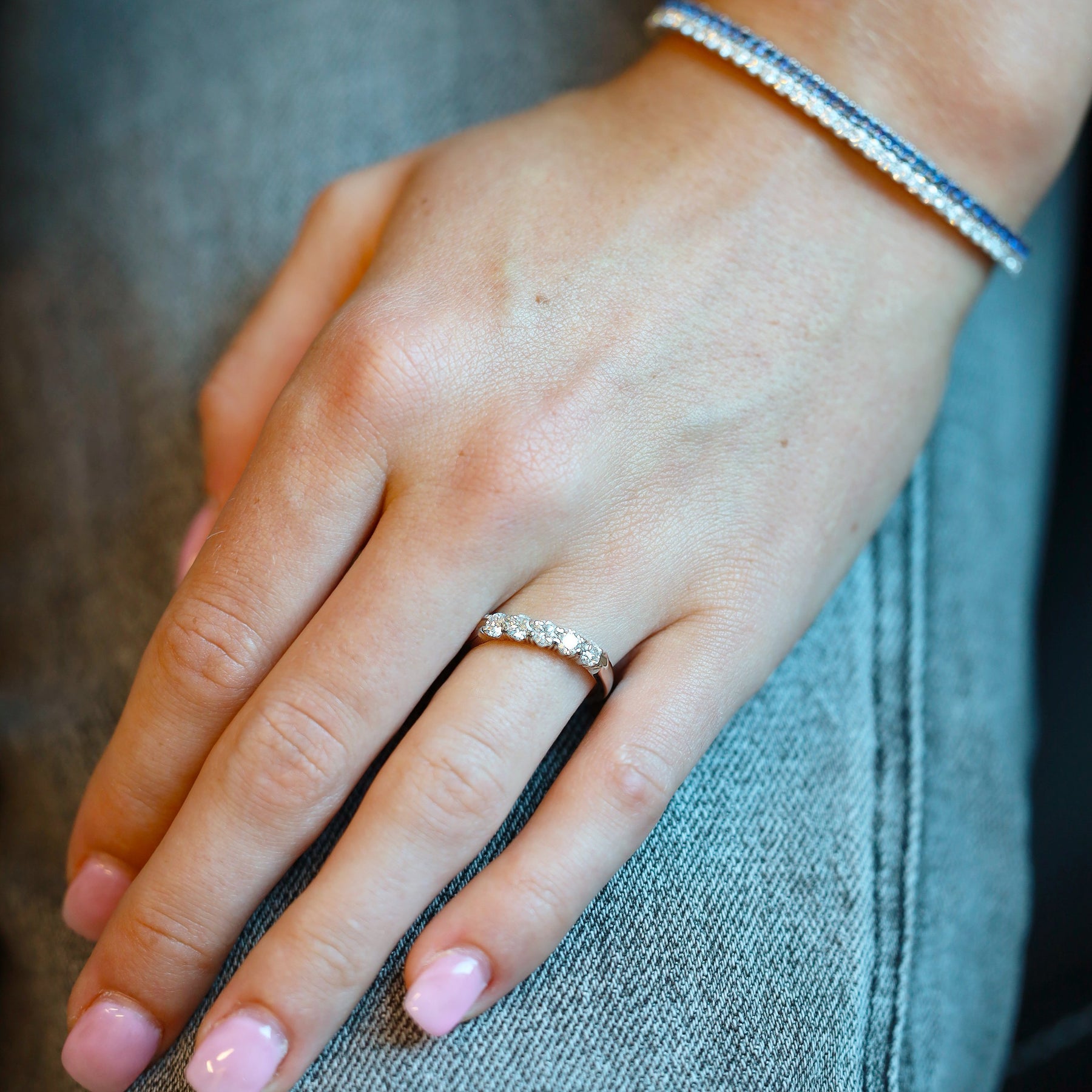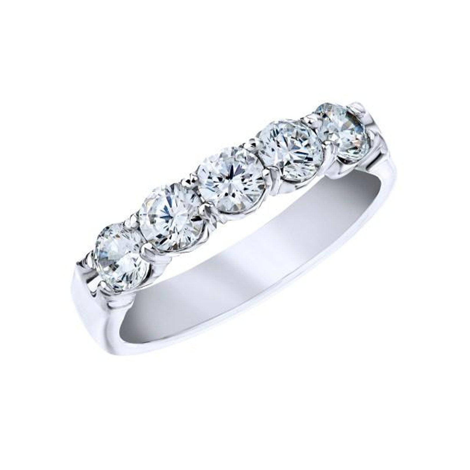14K white gold anniversary band from The Signature Collection by Continental Diamond featuring 5 shared split prong-set round diamonds totaling 0.73 ctw (FG/VS).