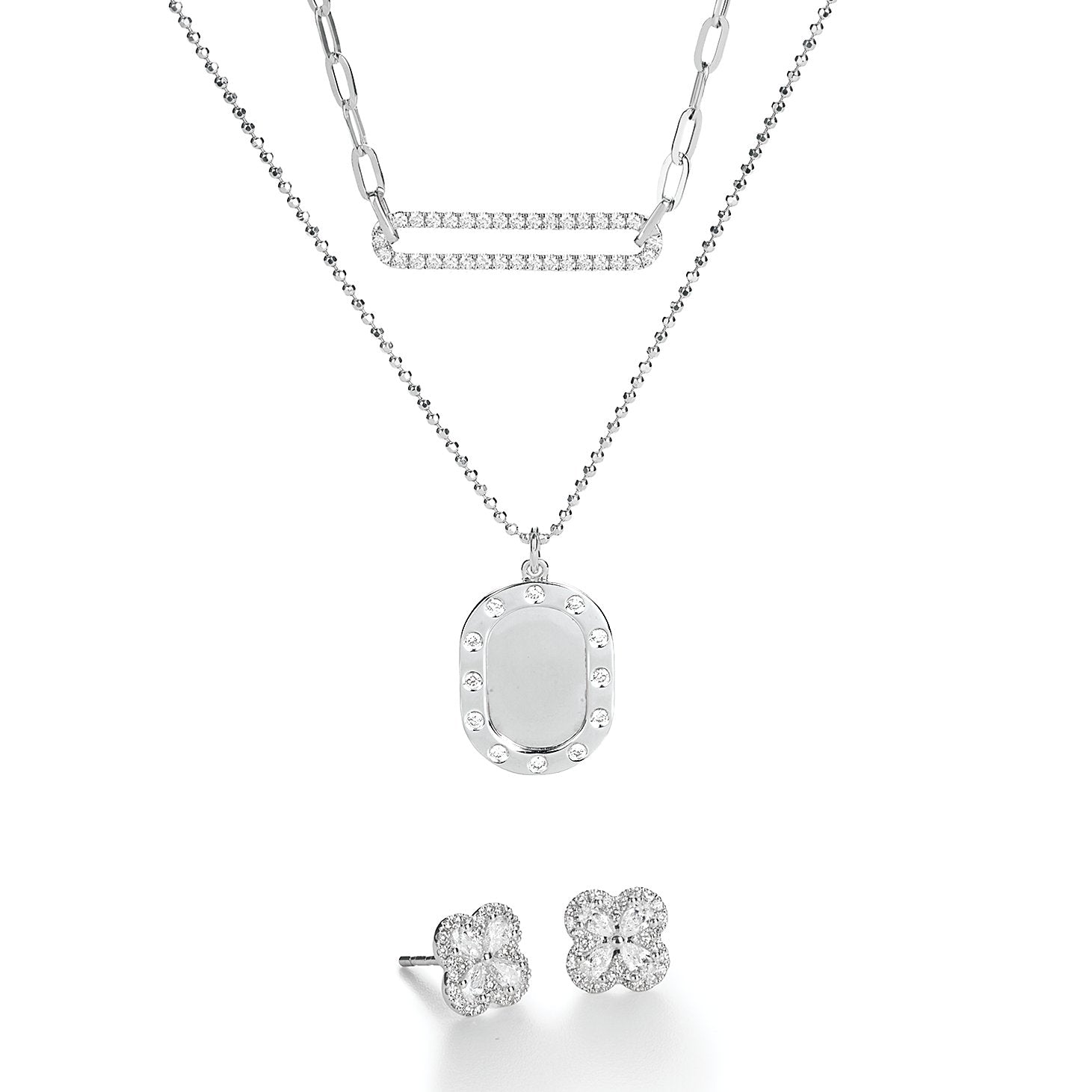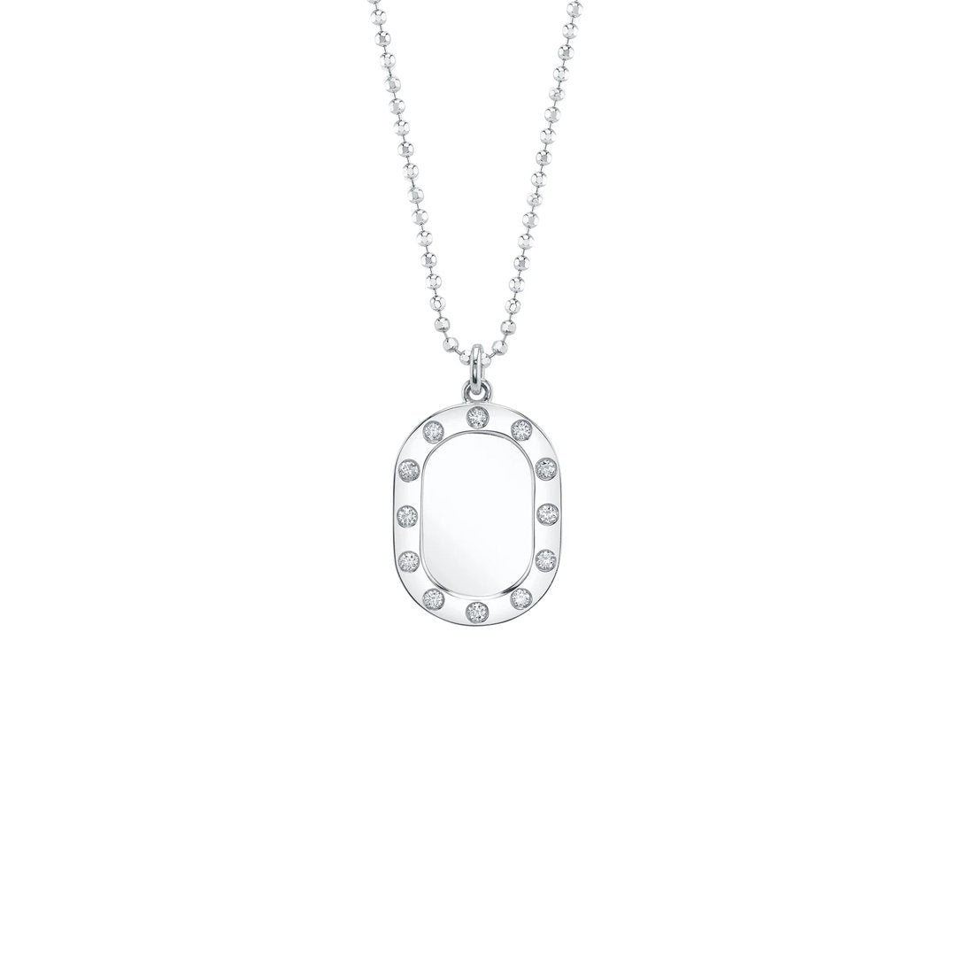 14K white gold 15"+3" adjustable oval faceted ball necklace with 12 flush-set round diamonds totaling 0.16 carats (GH color, SI clarity).