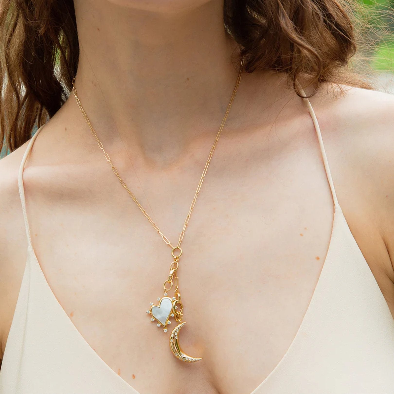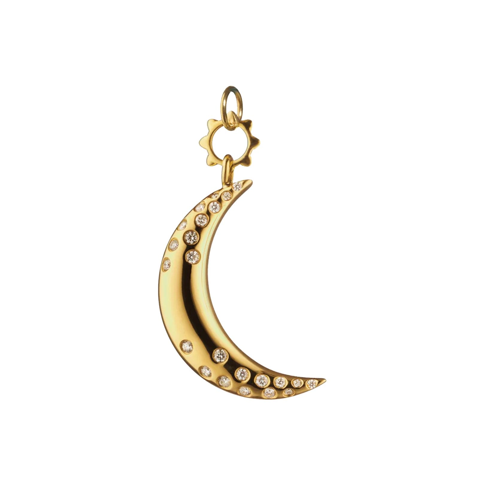 18K yellow gold crescent moon charm featuring 0.21 ctw of flush-set round diamonds (FG/VS2).