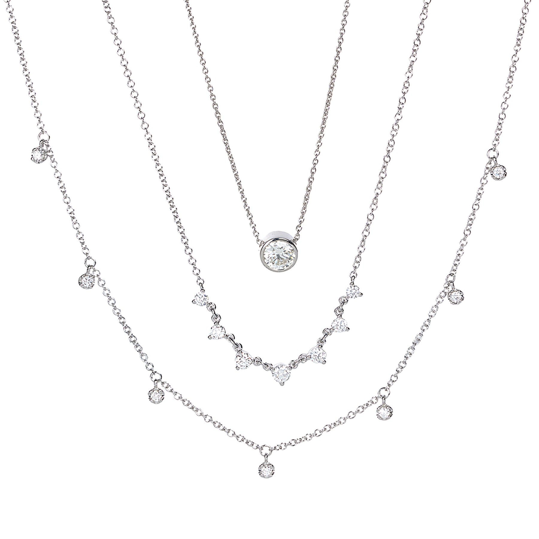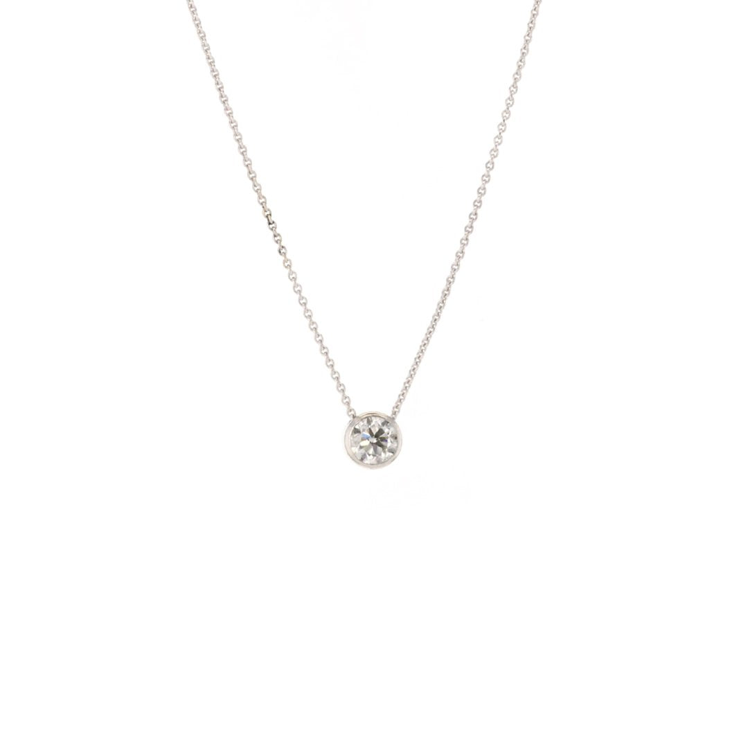 14K white gold 18" necklace featuring one 0.54ct round I/I1 diamond in a bezel setting. Custom created by Continental Diamond.