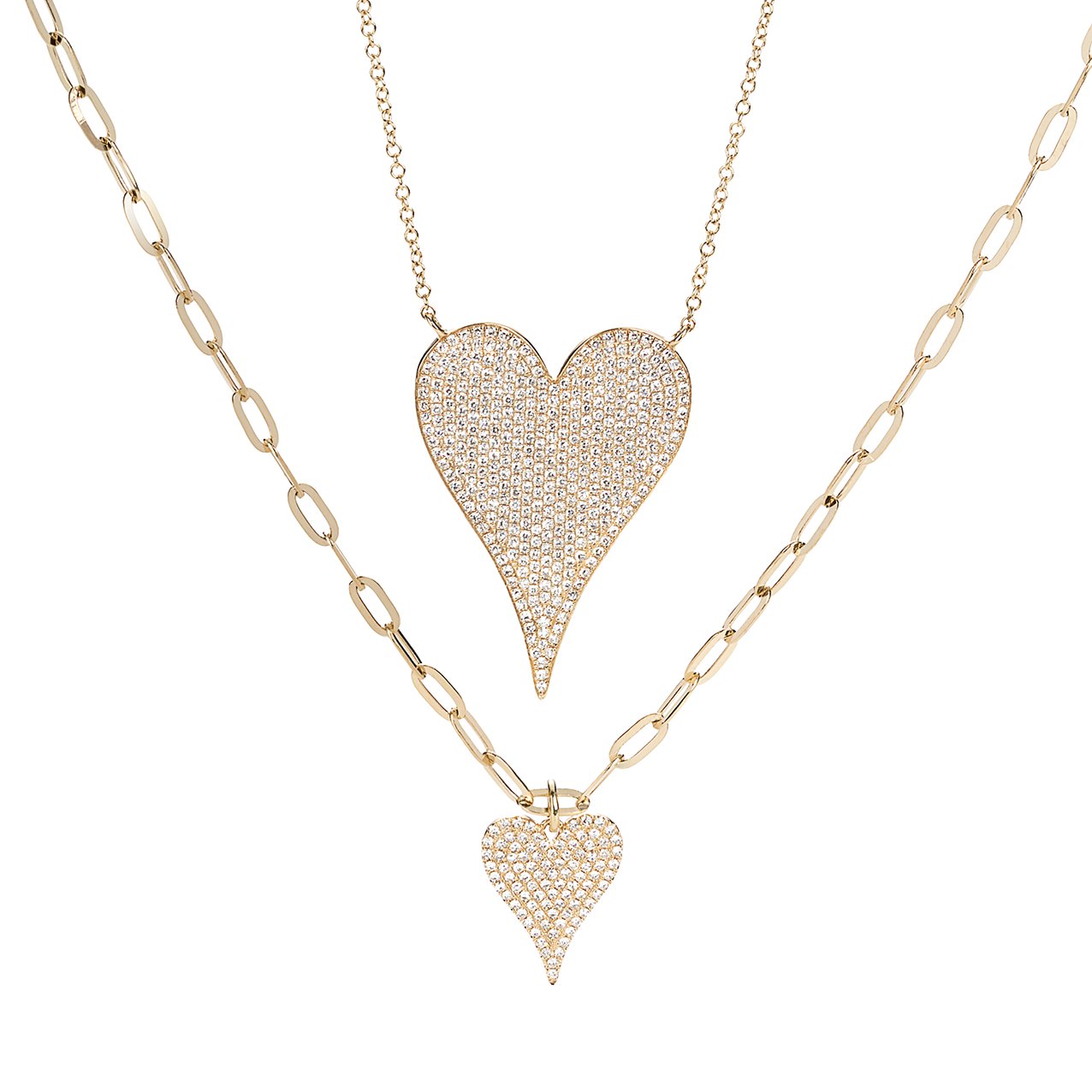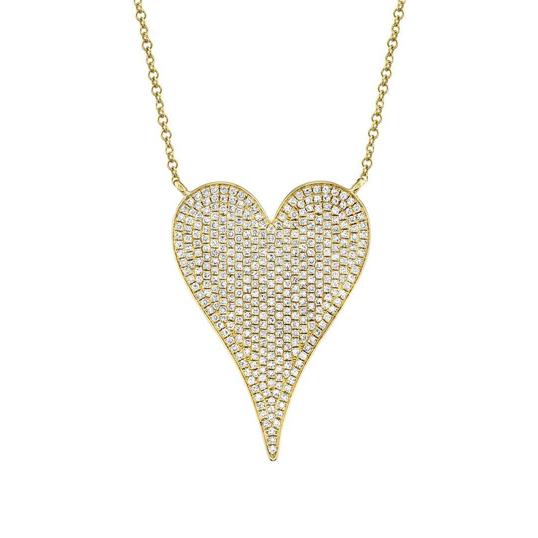 14KT yellow gold 15+3" necklace showcasing a bold pavé heart pendant set with 376 round diamonds totaling 0.83ctw (GH/SI).
