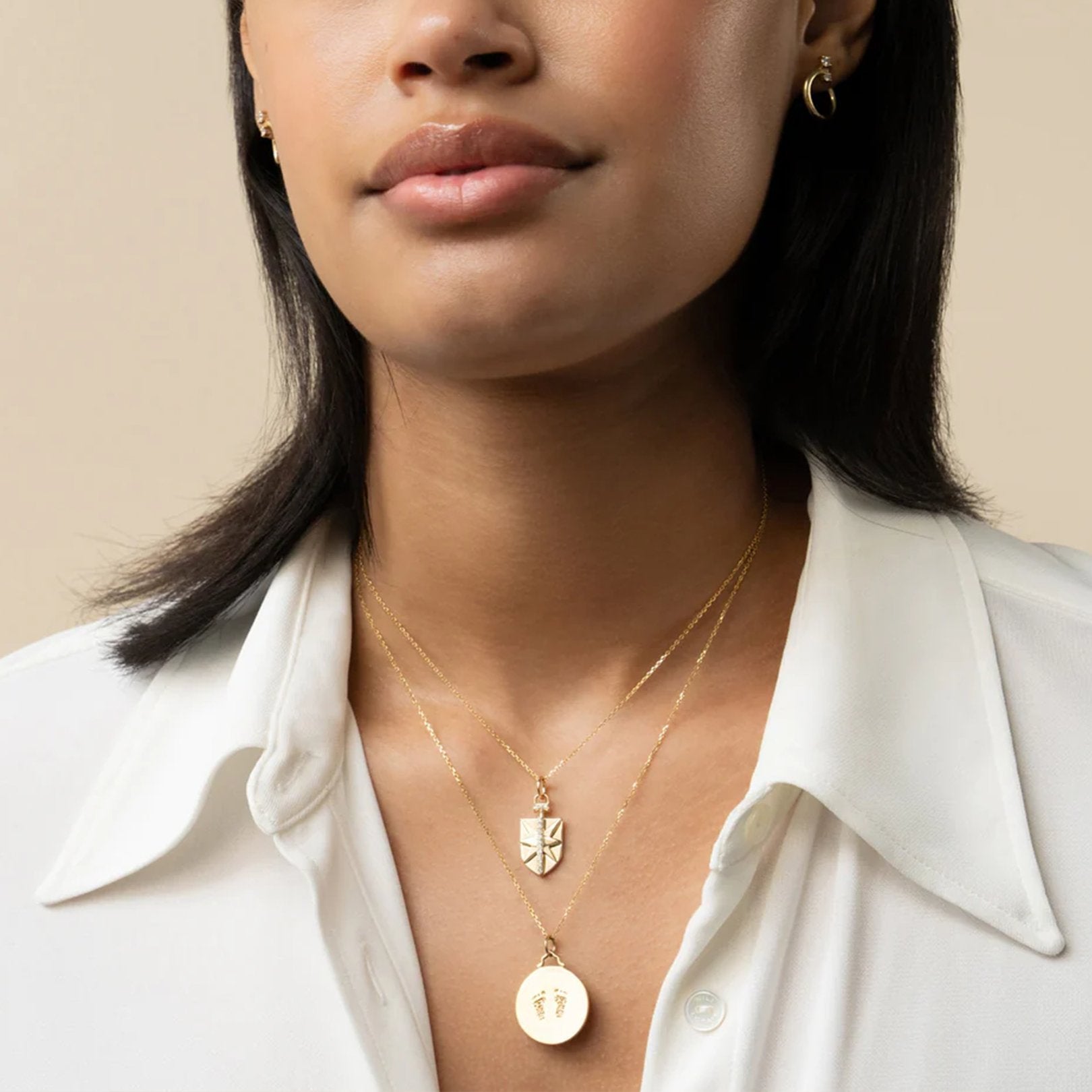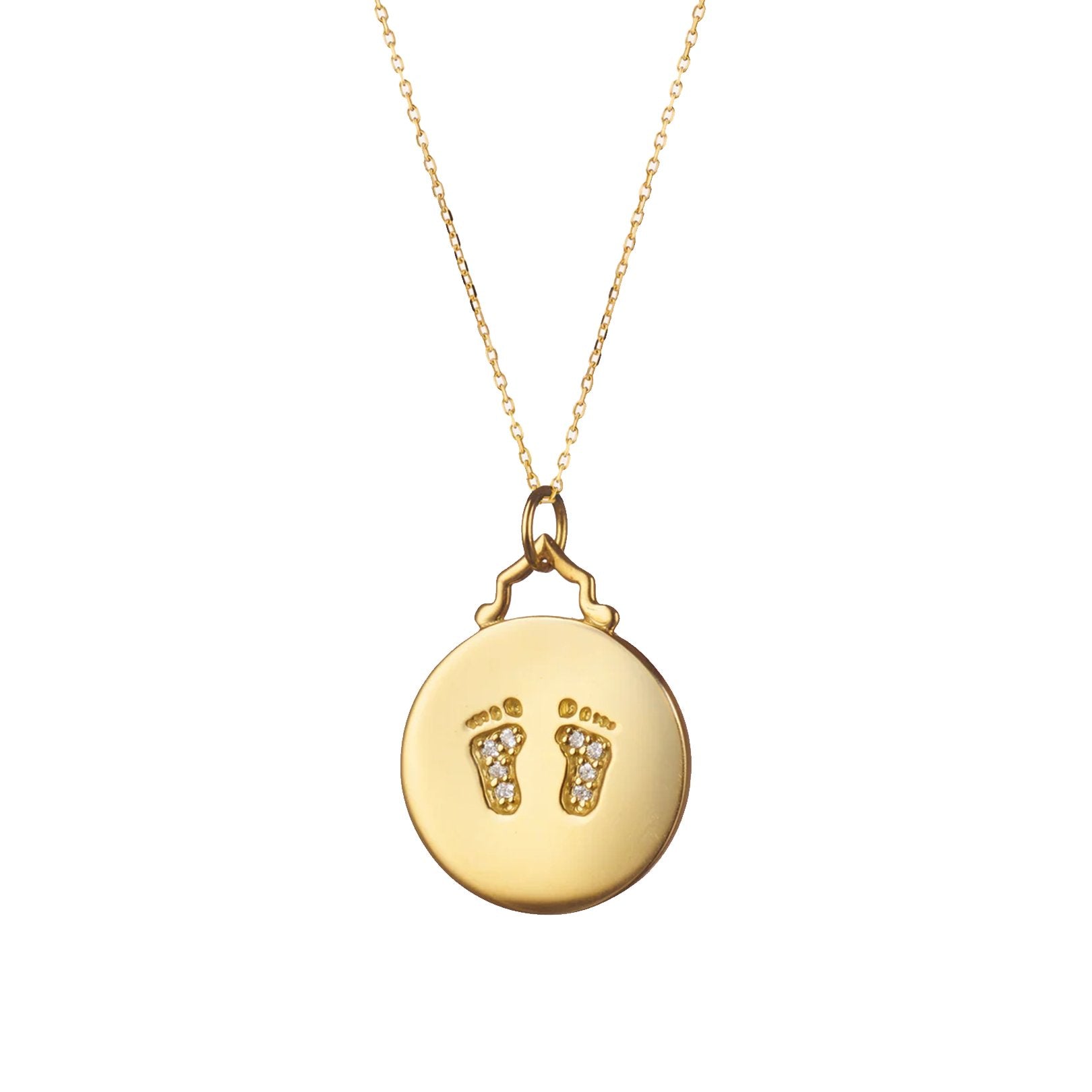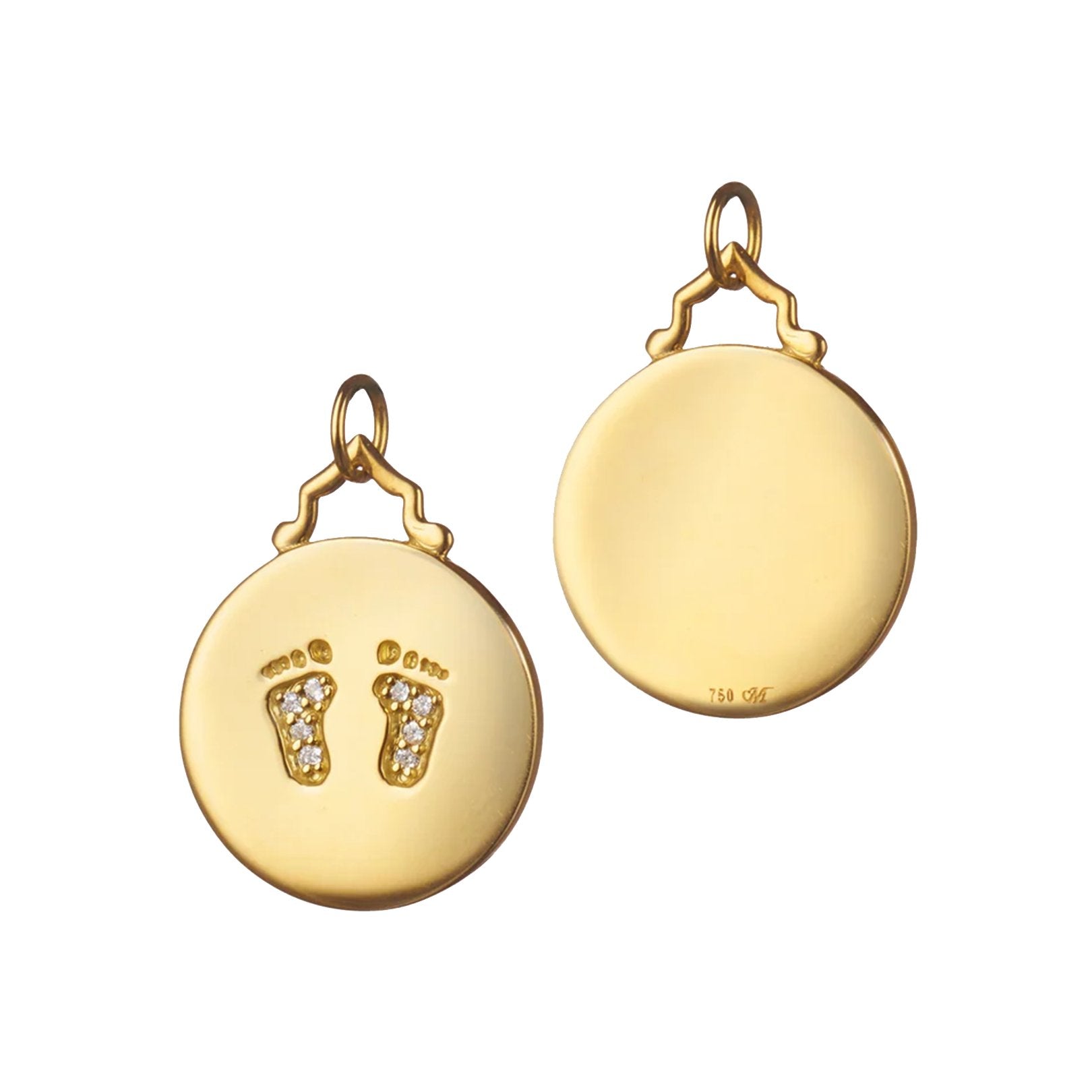 This 3/4" round baby feet charm in 18K yellow gold features diamond accents (FG/VS2). Chain sold separately.