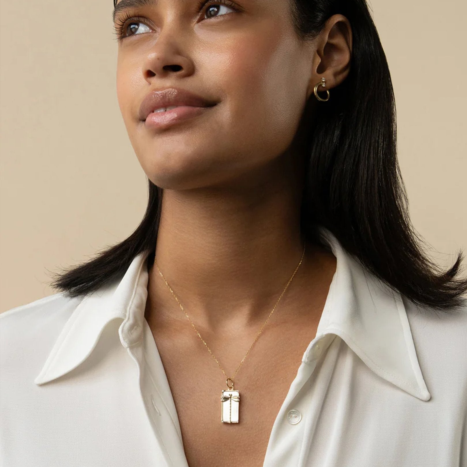 Mother of Pearl & Diamond Dragonfly Charm Pendant Necklace