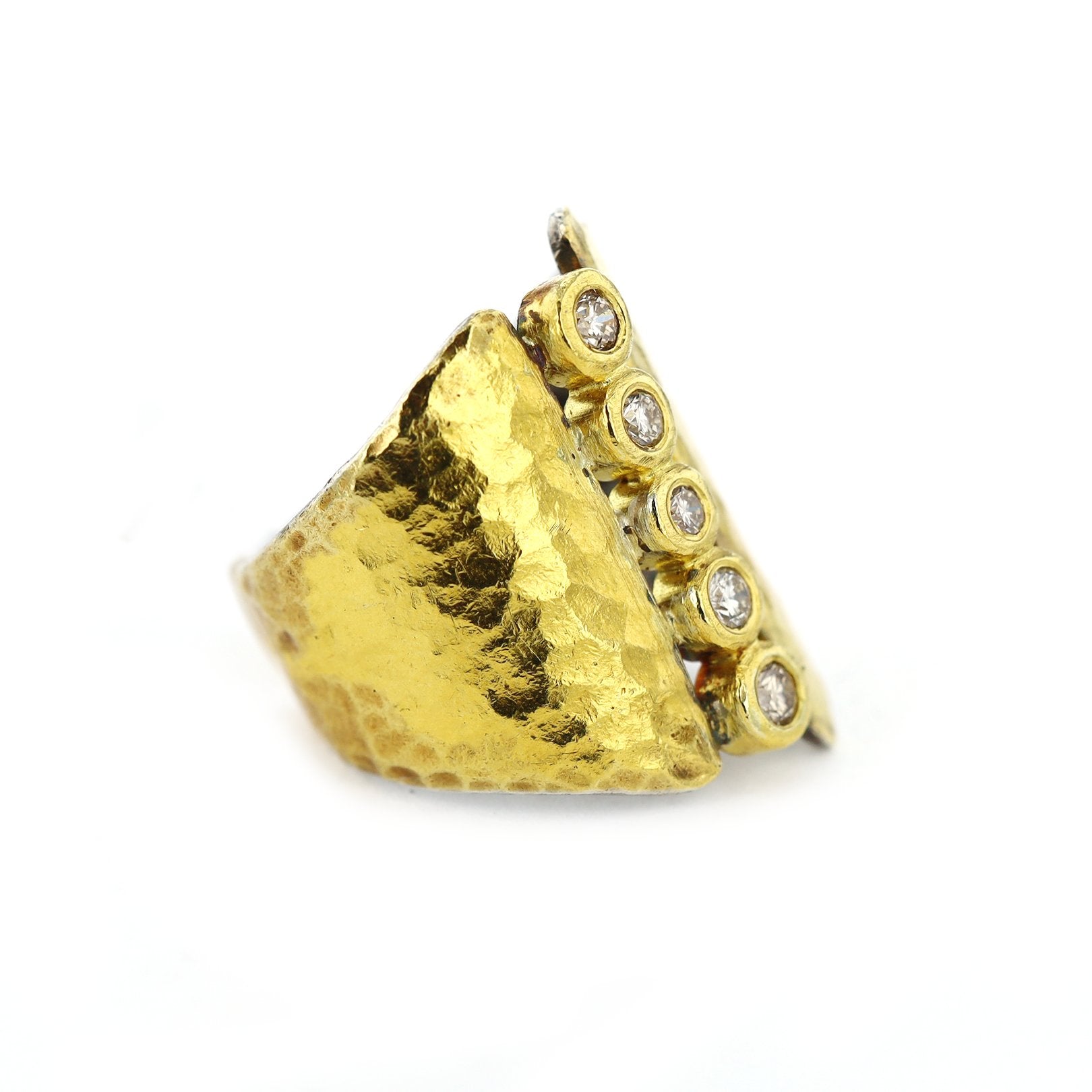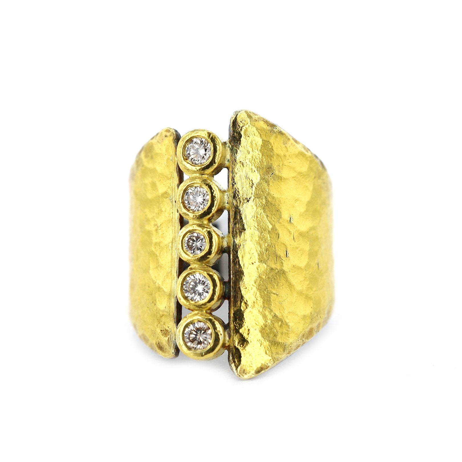 24K yellow gold and oxidized silver ring by Ara, set with five bezel-set round diamonds totaling approximately 0.45 ctw.