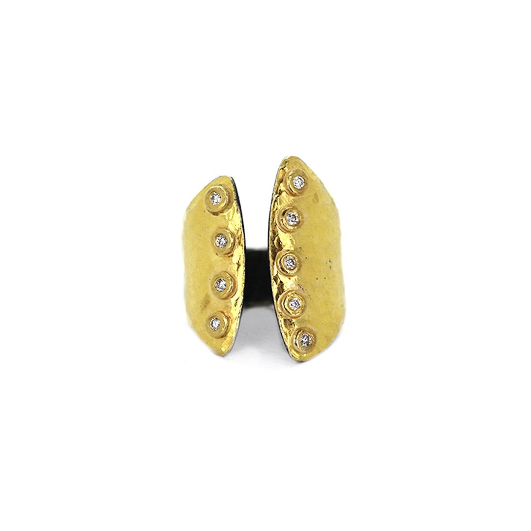 24K yellow gold and oxidized silver ring with 9 bezel-set round diamonds totaling 0.20ctw.