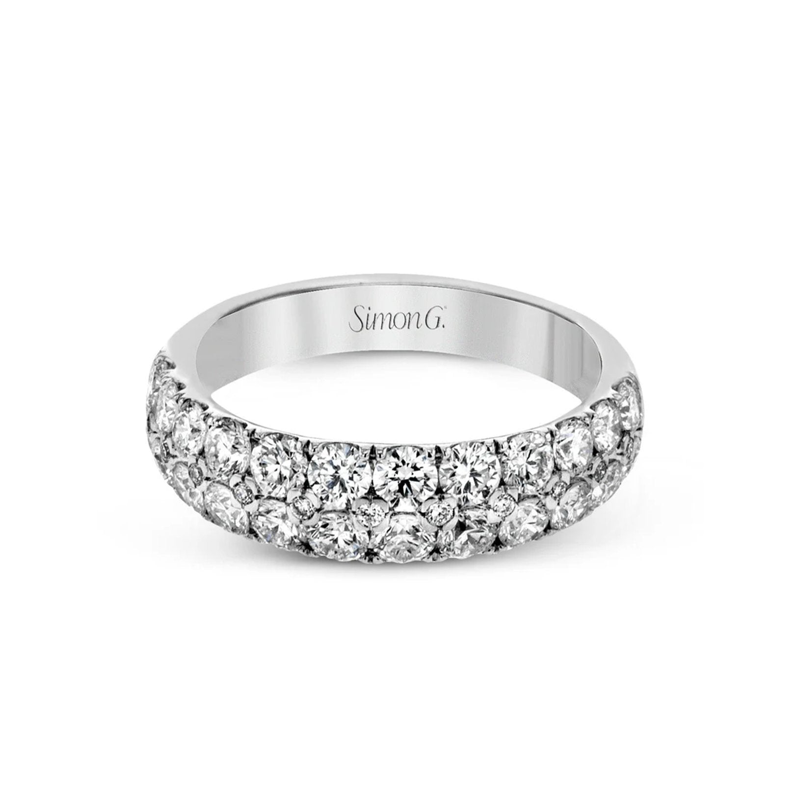 18kt white gold two-row band with 35 prong-set graduating round diamonds (1.50ctw, GH/VS2).