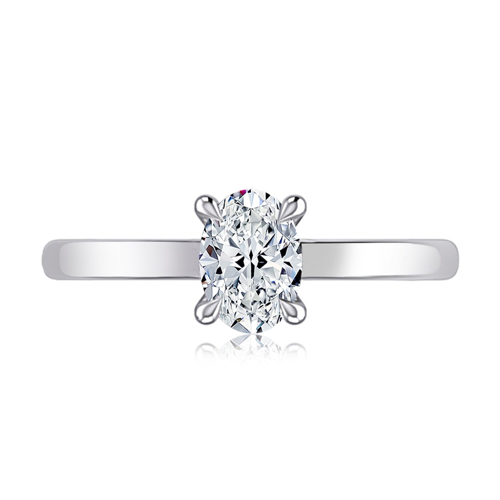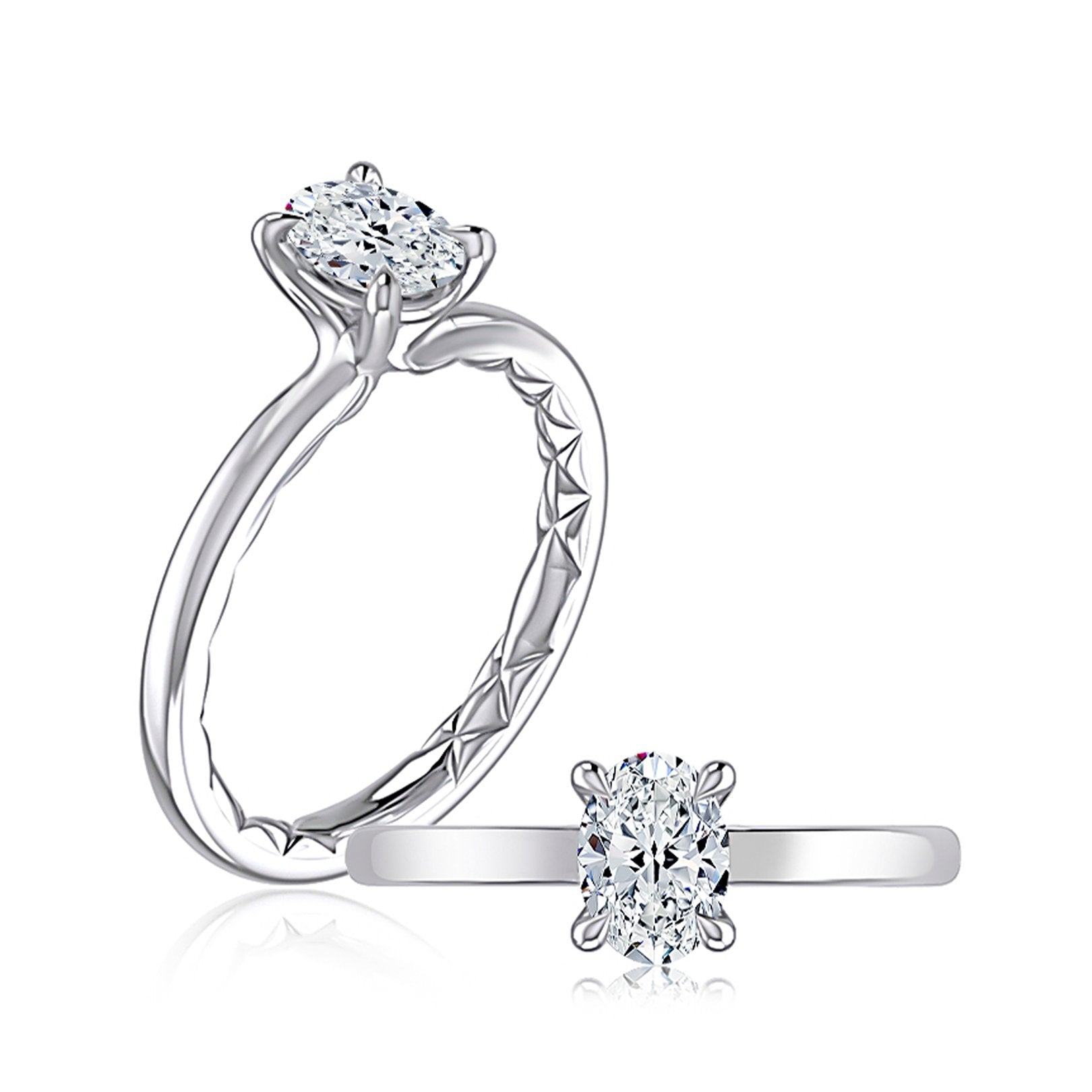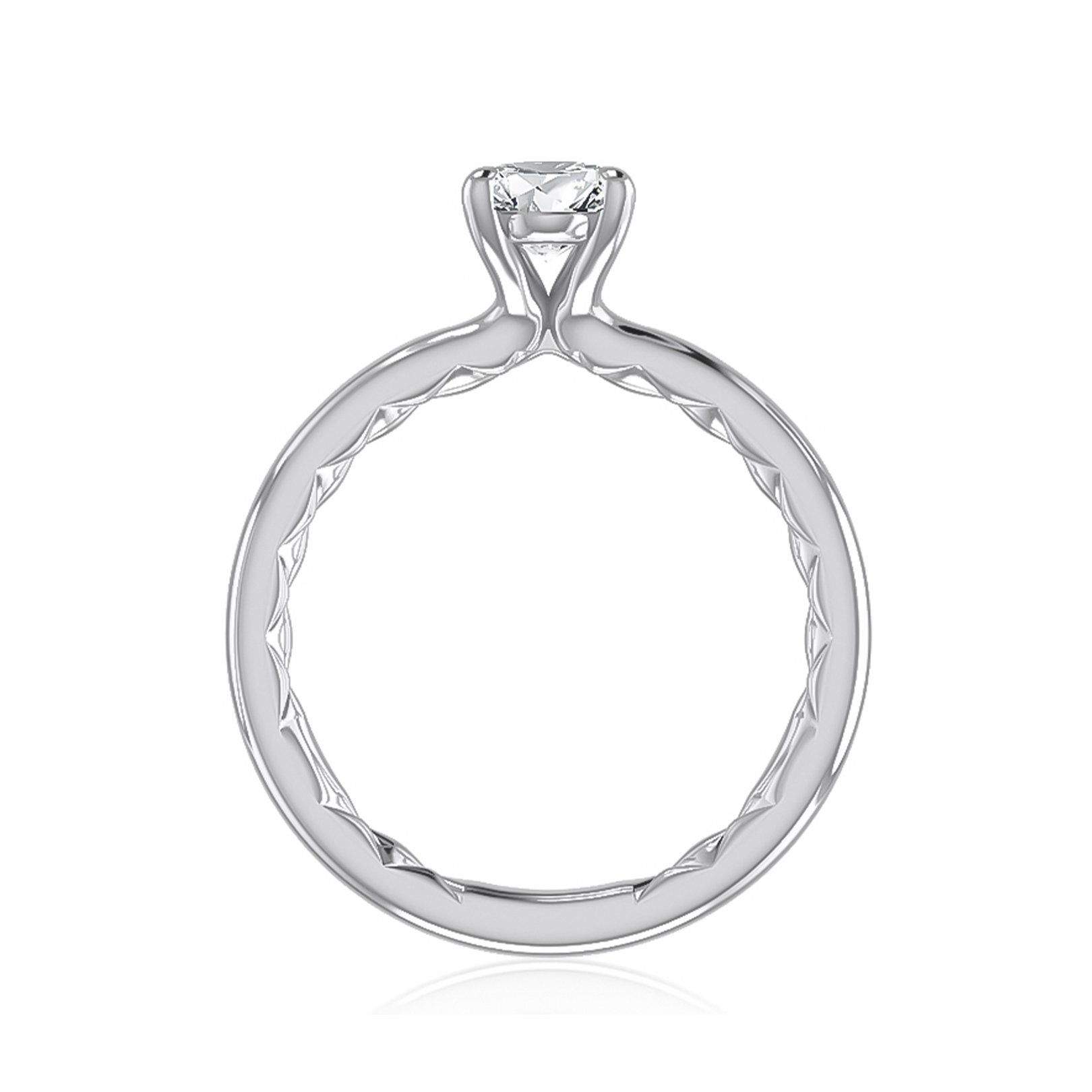 18KT white gold Quilt solitaire ring: Features a 4-prong head (1.50CT oval crown size) with a unique quilted interior design. Center sold separately. Available by special order in other metals, shapes, and sizes.