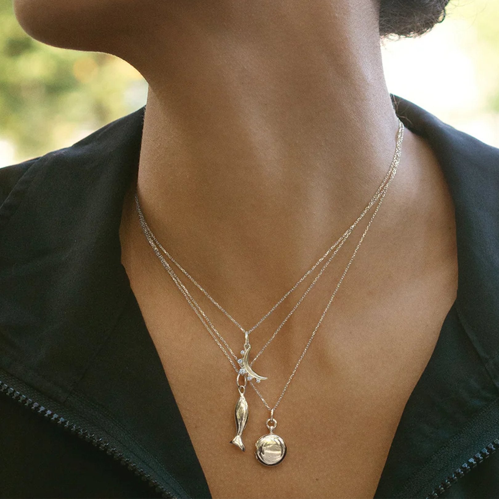 Silver Fish Charm Pendant Necklace