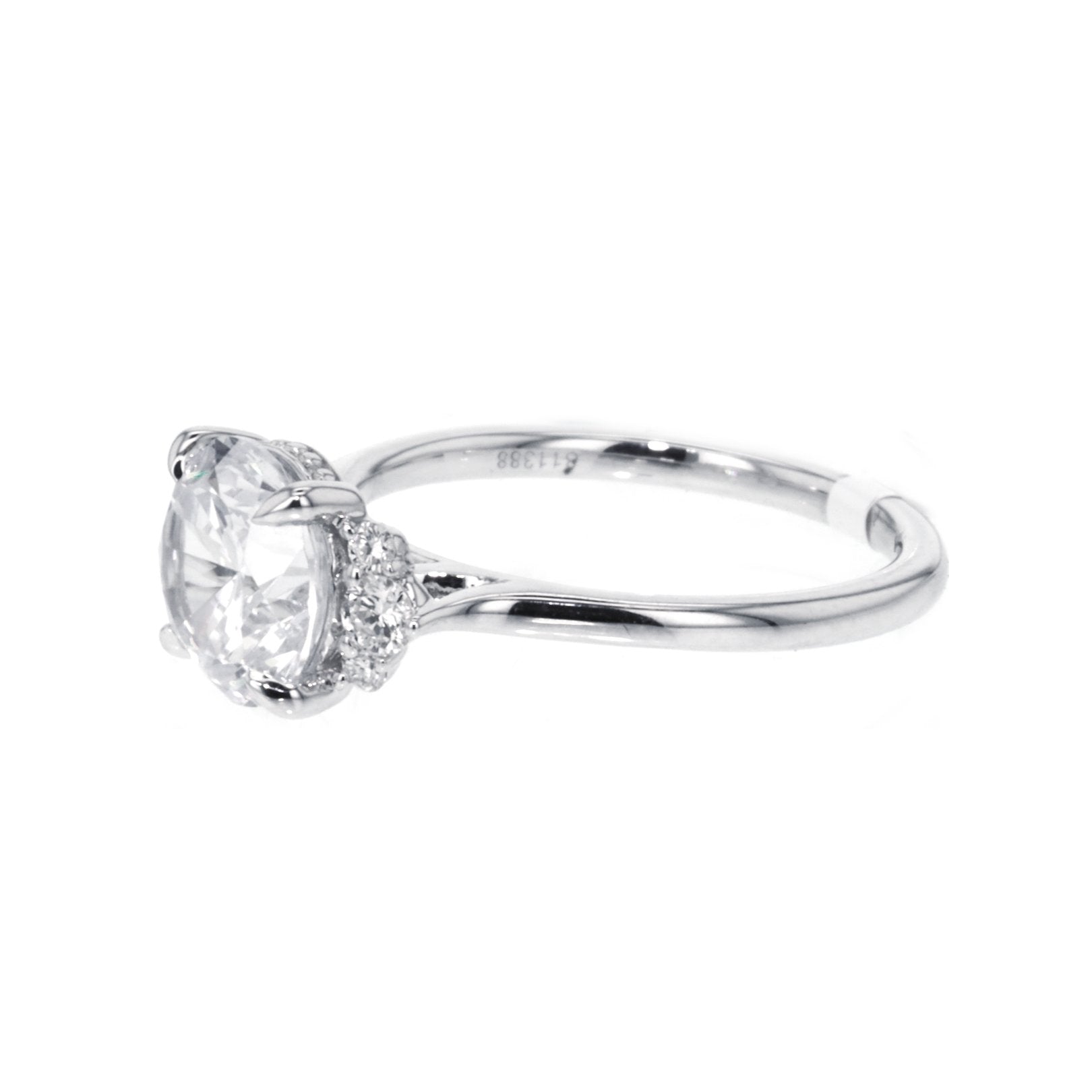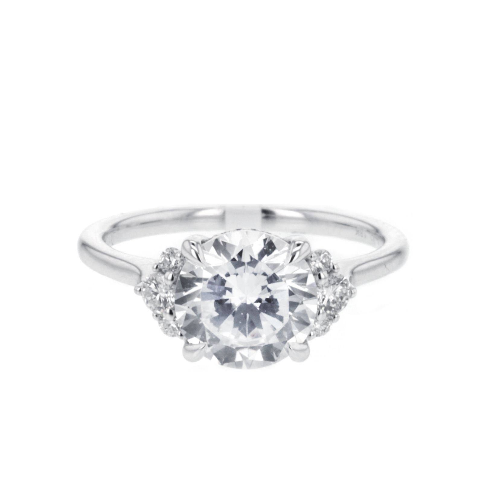 18K white gold semi-mount ring with a four-prong setting for a 2.00 carat round center. Accented with 6 round diamonds totaling 0.17 carats, prong set, FG color and VS clarity. Center sold separately. Available by special order in other metals, shapes, and sizes.