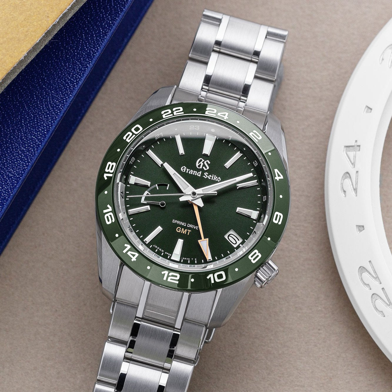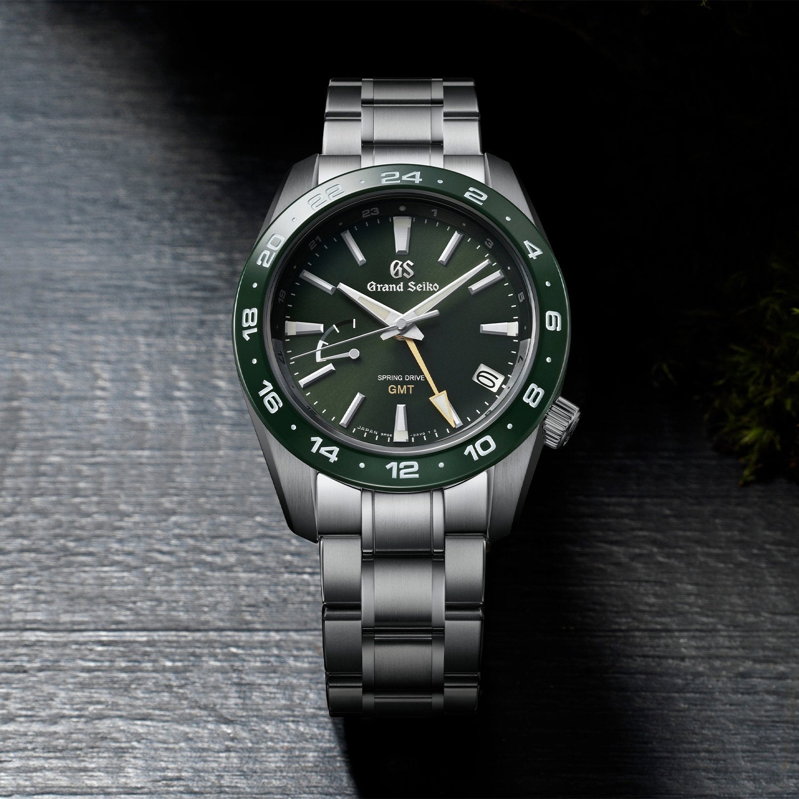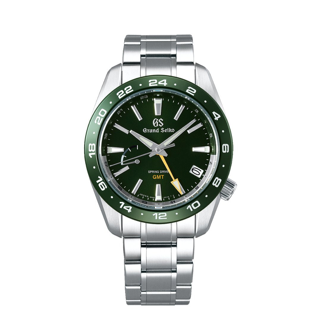 Sport Collection Spring Drive GMT – a robust 40mm stainless steel timepiece featuring a striking green dial and matching green bezel. Equipped with the precision of Spring Drive movement, it offers a 72-hour power reserve and GMT functionality. Finished on a stainless steel bracelet.